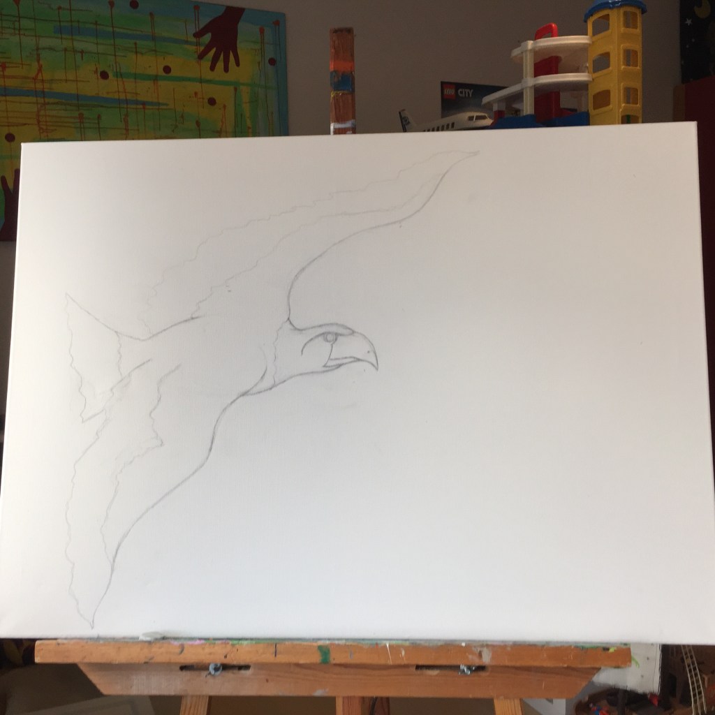 Da dette var mit første store bestillings-maleri, var præstationsangsten dermed også på sit højeste. Det var utrolig vigtigt for mig at modtager var tilfreds med det færdige resultat, men også vigtigt at jeg selv blev tilfreds med det færdige resultat. Jeg havde aldrig malet ørne før, og derfor startede jeg også med skitsere ørnene, inden jeg påbegyndte maledelen.