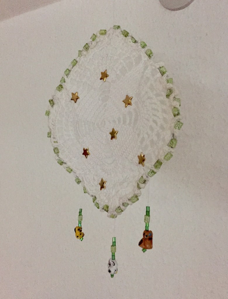 Som barn lavede vi drømmefangere i skolen. Og min lærer fortalte os at indianerne troede på at drømmefangerne fangede de onde drømme og kun lod de gode drømme slippe igennem (om det er fuldstændig rigtig ved jeg ikke). Men det gav mig ideen til selv at lave en drømmefanger.