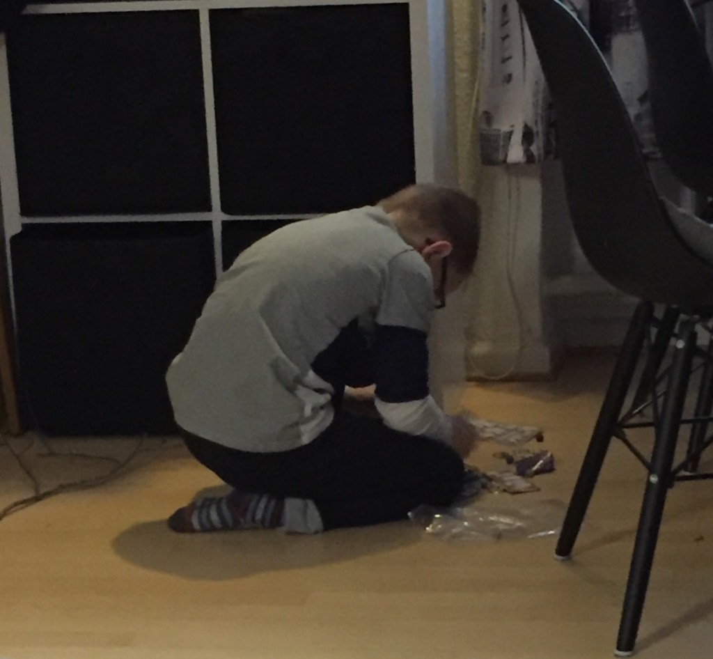 Og minsandten om der ikke gik længere tid end at der kom en vinterferie med en dag, hvor knægten kedede sig?! Jeg viste ham de nye kreakasser, og til en start var han da overhovedet ikke interesseret. Men det vendte faktisk ret hurtigt, da han fandt ud af at mor og far faktisk ikke havde tænkt sig, at vi skulle noget som helst, og mor bare sagde “Det er sundt at kede sig!” Siden har hans kreative evner vist sig mere end én gang, og han har både været i gang med at tegne, klippe og lave vinduesmaling 🙂 1 – 0 til mor! 🙂