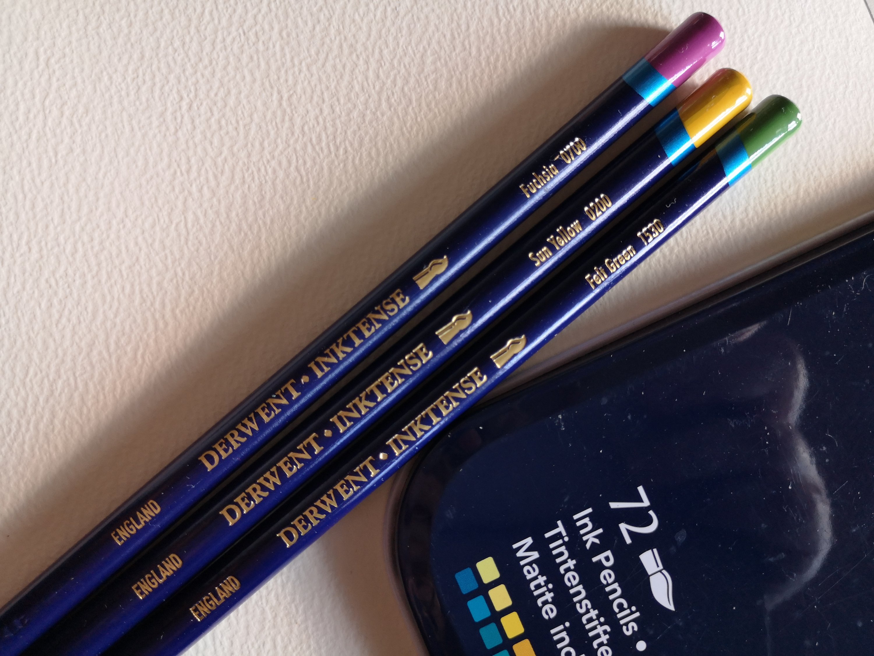 Jeg vil anbefale at du i de næste øvelser arbejder i de medier (akryl, tørpastel, akvarel, osv.) DU har til rådighed og har lyst til at arbejde med, uanset hvilke det er. Jeg har brugt Derwent Inktense farveblyanter, men bruger også ofte denne teknik når jeg maler med akryl.
