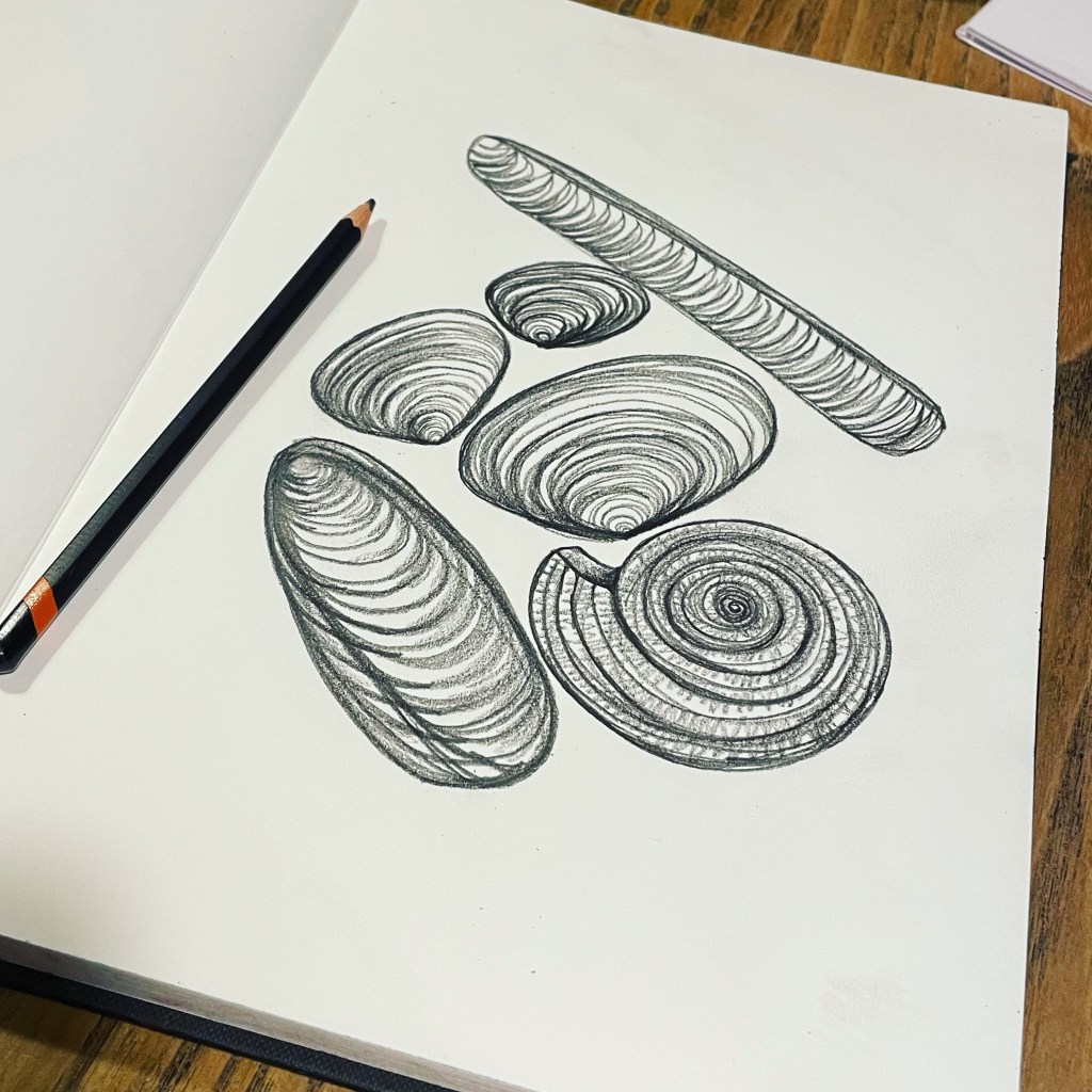 - Tegn: Jeg tegner, mønstrer, øjne eller hvad der nu lige dukker op. Det behøver ikke ligne noget. Det handler mest om at fordybe sig, koncentrere sig om noget andet og finde ro. At lade tanker komme til udtryk.