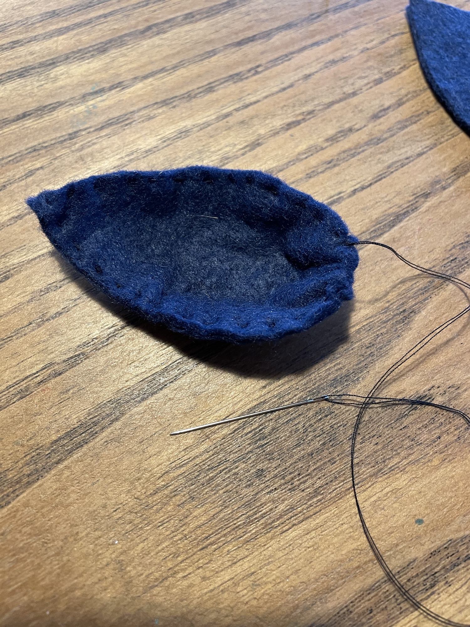 - Først klippes og syes ørerne sammen. Se billeder ovenfor.