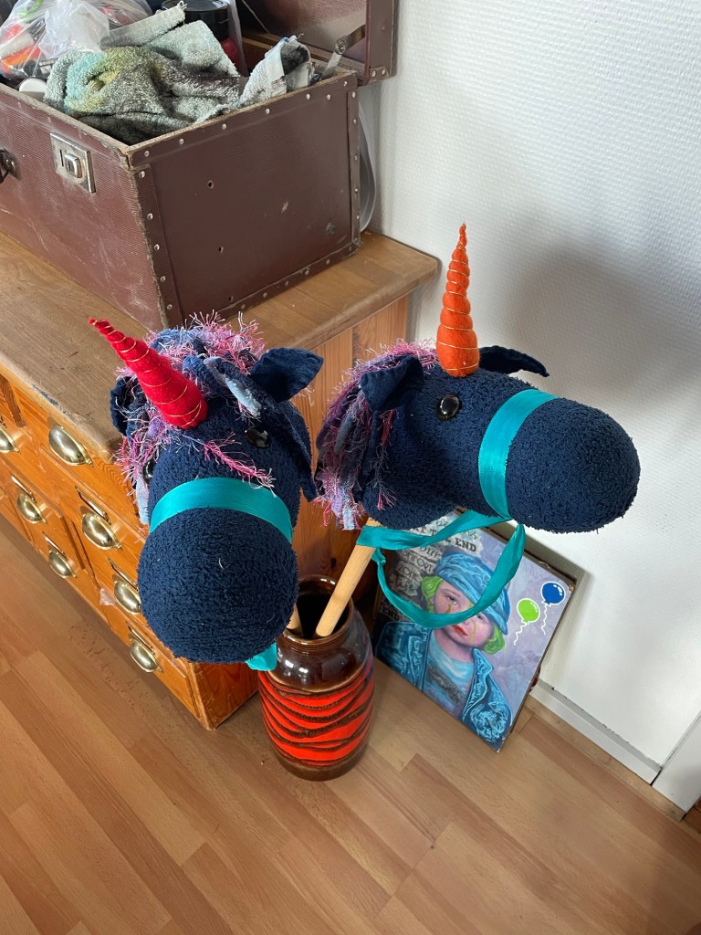 Kæpheste eller Hobbyhorse, som det også kaldes i dag, er blevet utroligt populære både blandt børn og unge. De findes i flere forskellige udgaver, og efterhånden er det også blevet ret populært at lave dem selv. Så jeg har selvfølgelig også været i gang med at være kreativ og lave kæphest til drengene, der efter eget valg besluttede, at det skulle være en kæphest enhjørning med regnbue hår. Denne DIY kæphest er lavet af genbrug, et par hyggesokker, fyld fra en pude, der skulle smides ud, og hvad der ellers lå i hobbyskuffen. Den var nem at lave, kostede mig ikke noget, og så var den nem at give sin helt egen personlighed.
