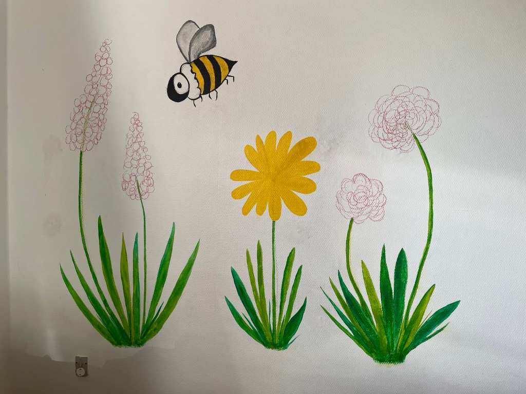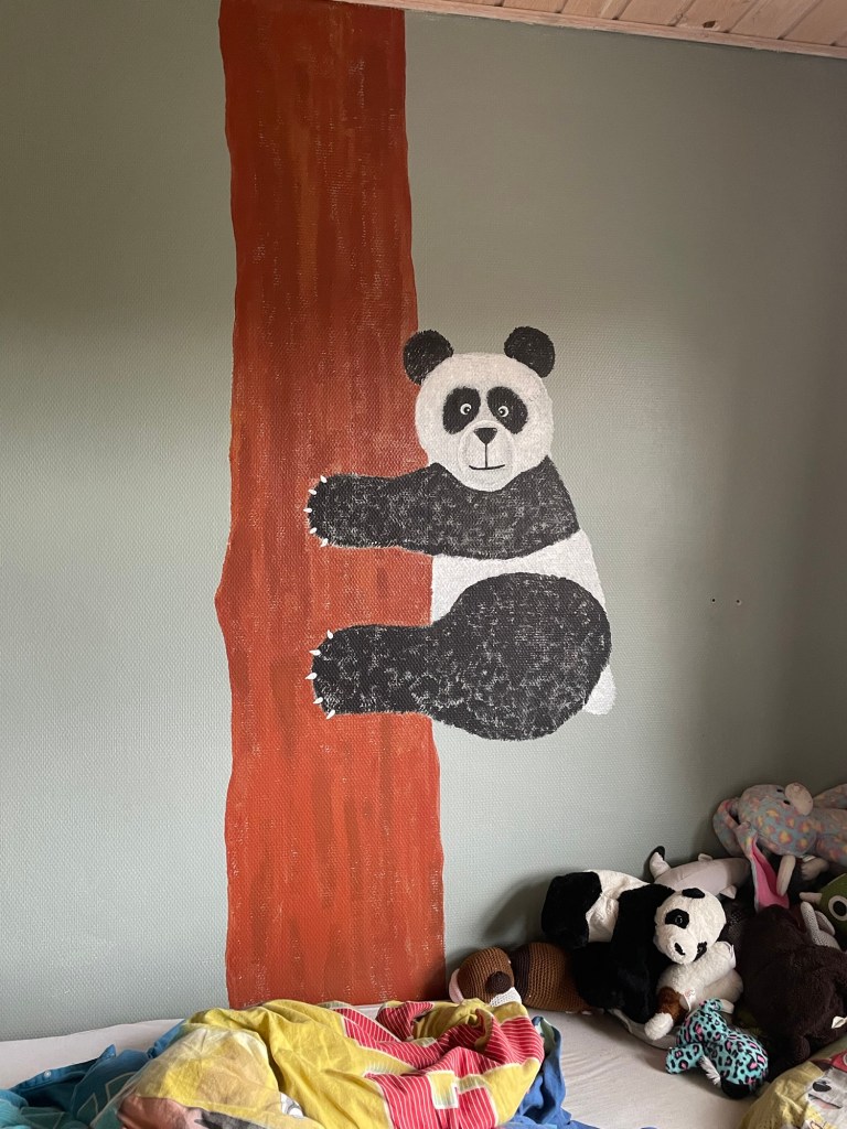 - Lav en skitse først. Her ønskede børnene hvad de gerne ville have, og jeg tegnede forslag på papir, så de kunne vælge hvad de helst ville have. Vi fandt inspiration gennem Google og Pinterest. På den måde kunne jeg også vurdere hvor meget plads motivet krævede på væggen. Et papir i str a5 svarede cirka til en væg. Det var også rart at lære motiverne at kende, inden de skulle op på væggen.