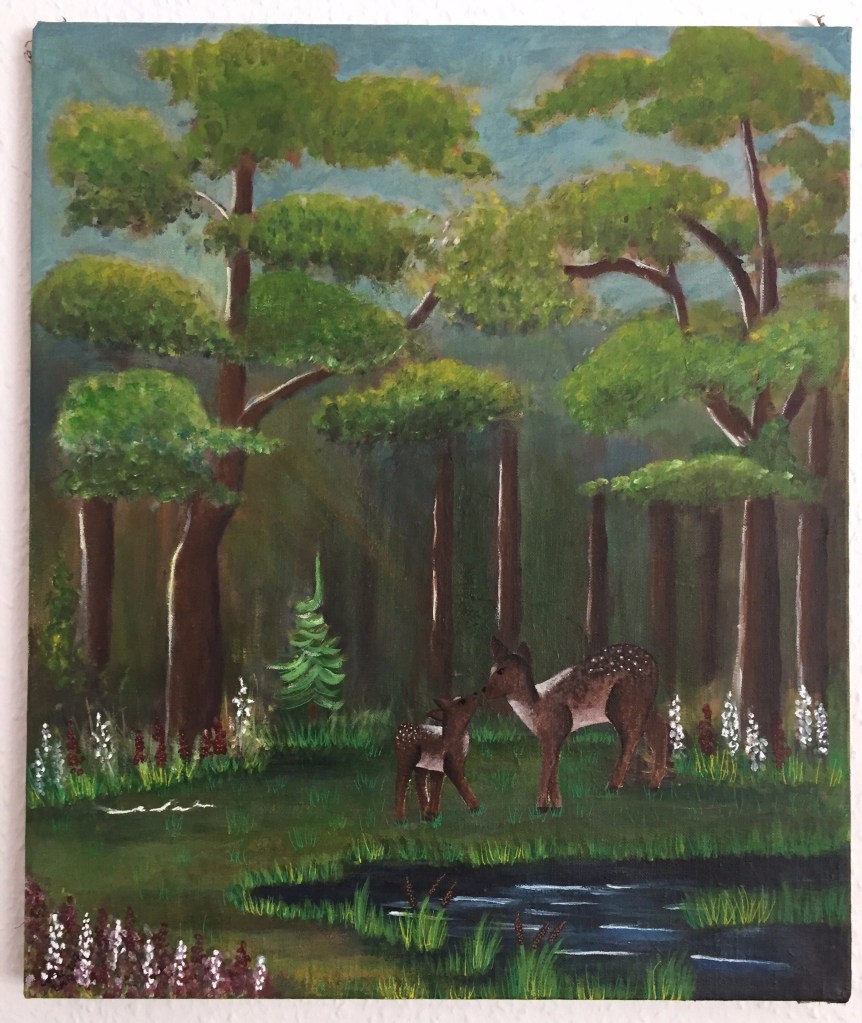Mine forældre havde dette maleri med rytteren der red gennem skoven hængende i deres nye sommerhus. De var ikke helt tilfredse med det, men i stedet for at smide det ud, spurgte de mig om jeg ville male det om. Og selvfølgelig ville jeg det.